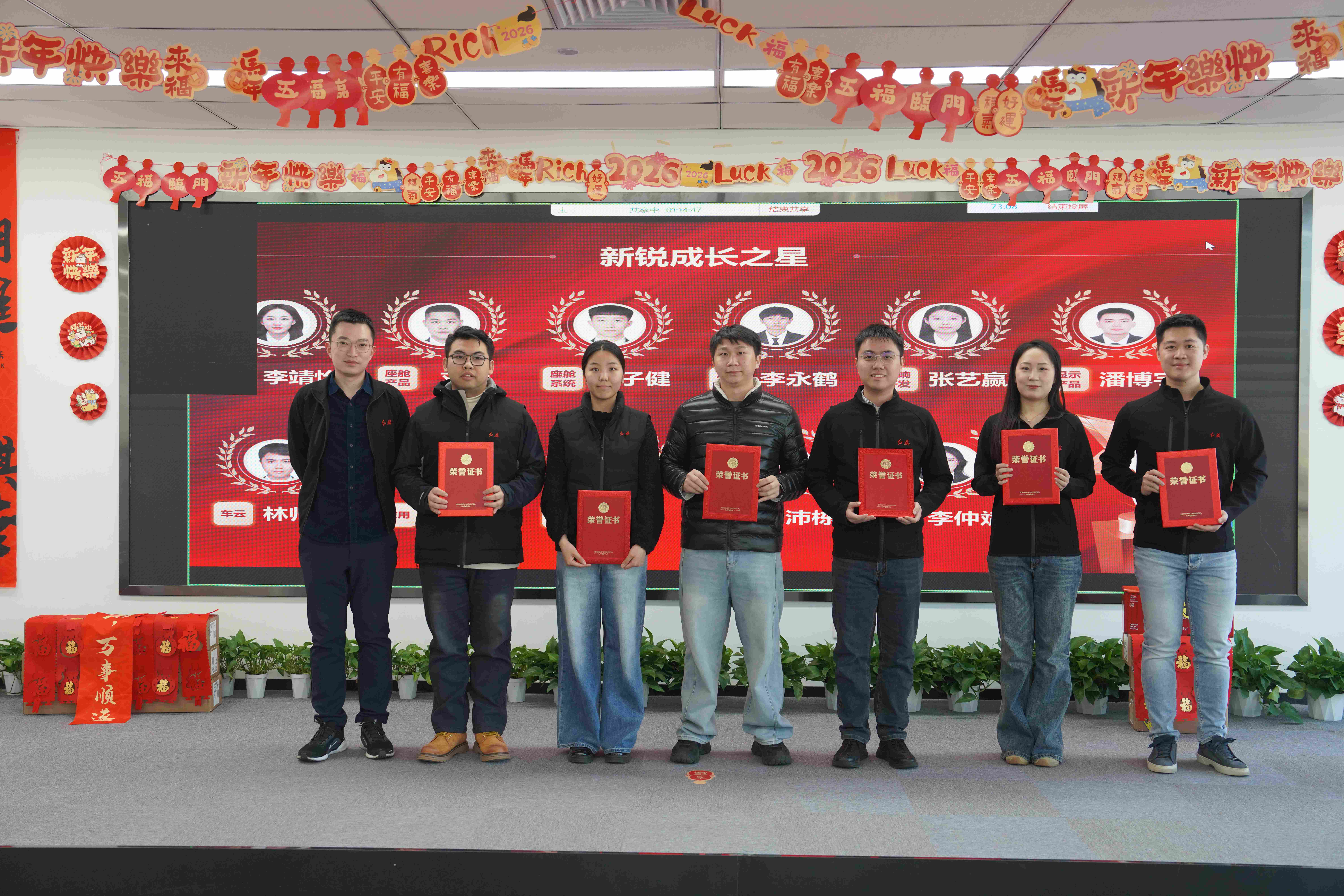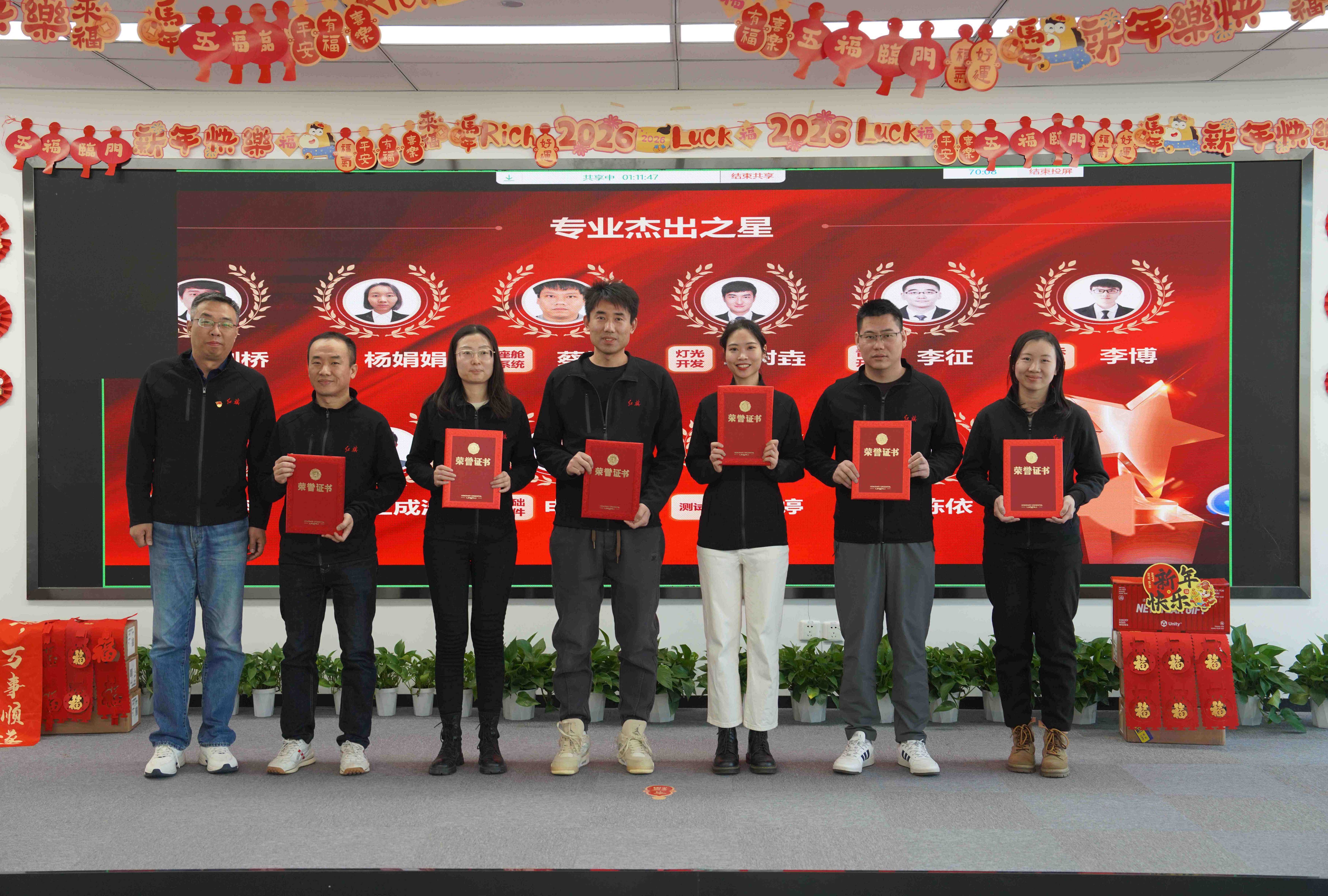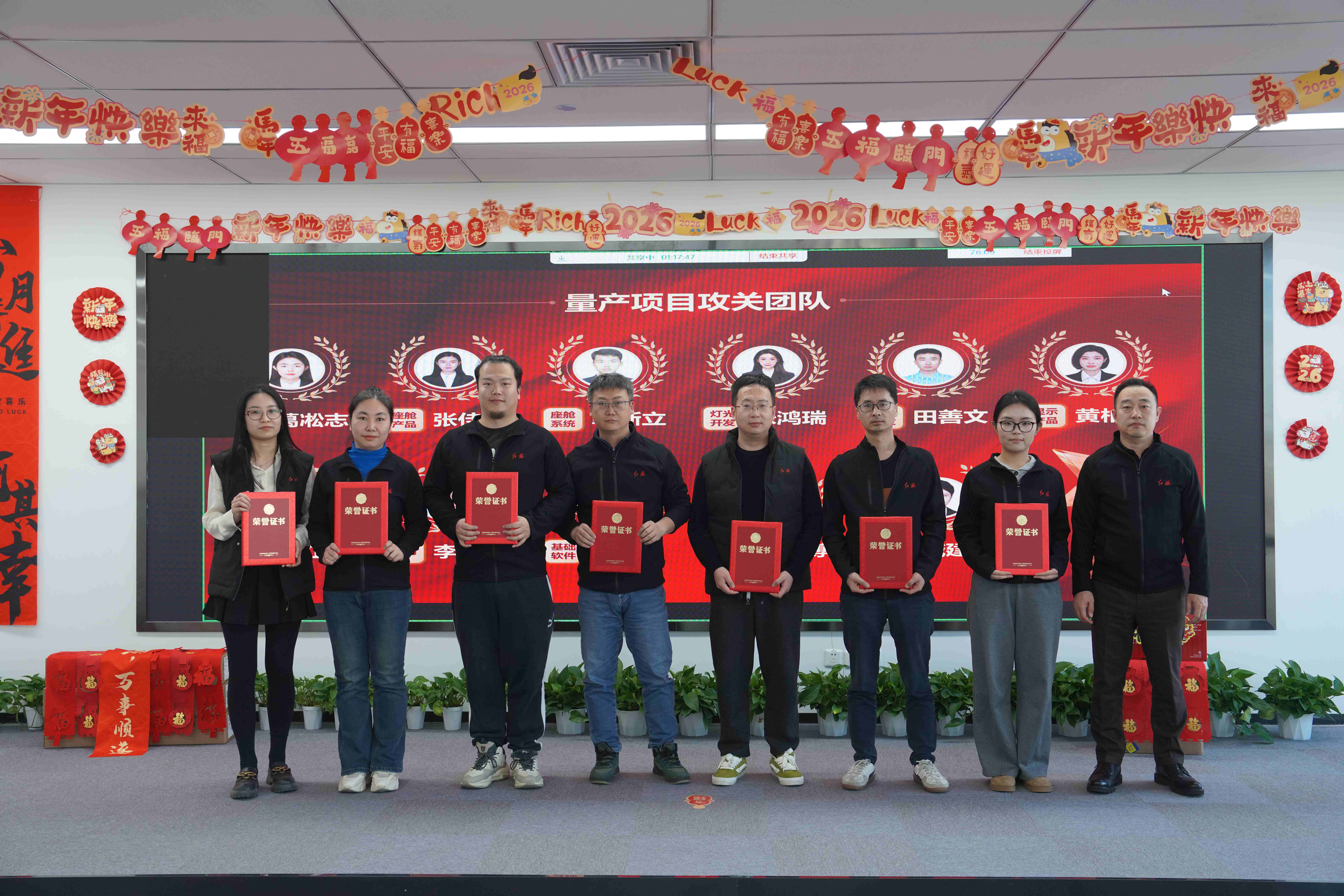最后大会对年度表现突出的集体和个人进行表彰。本年共设立“专业杰出之星”“创优先锋之星”“新锐成长之星”三大个人奖项,以及“量产项目攻关团队”“数智化攻关团队”“质量攻坚团队”“极致降本团队”“关键技术攻关团队”“效能提升团队”六大集体奖项。大会还联合工会组织了随机抽奖活动,惊喜连连,共110名员工获奖纪念礼品。