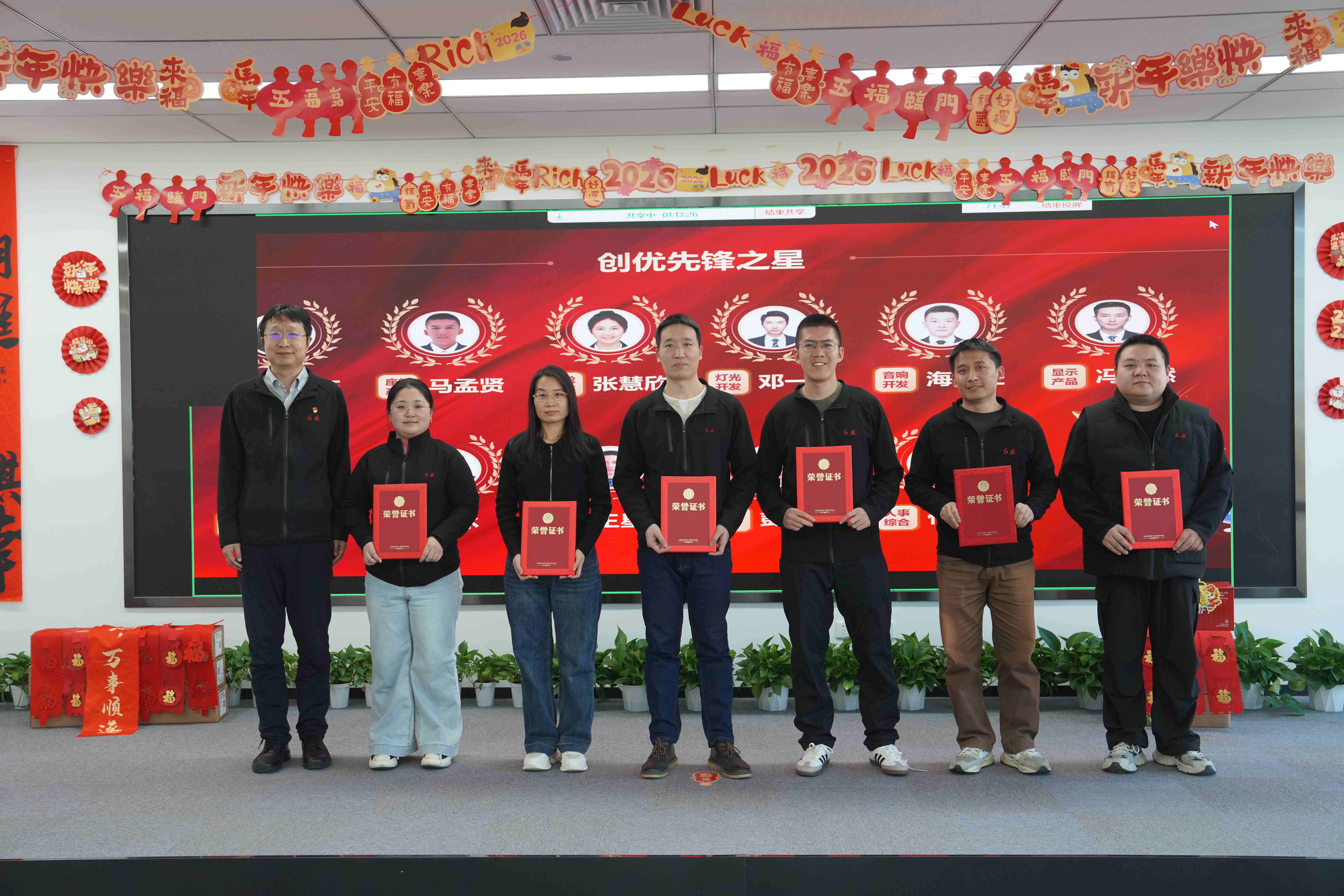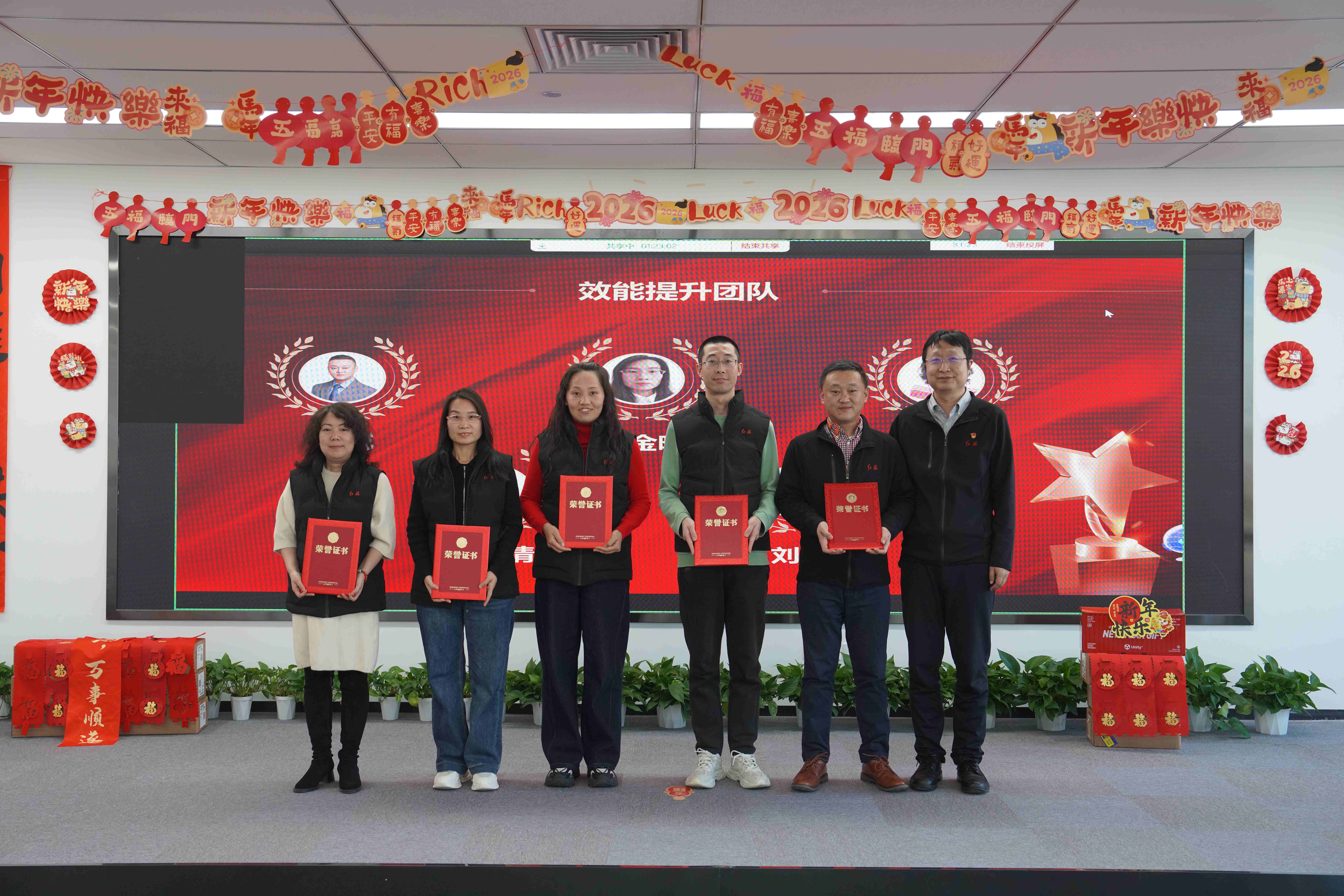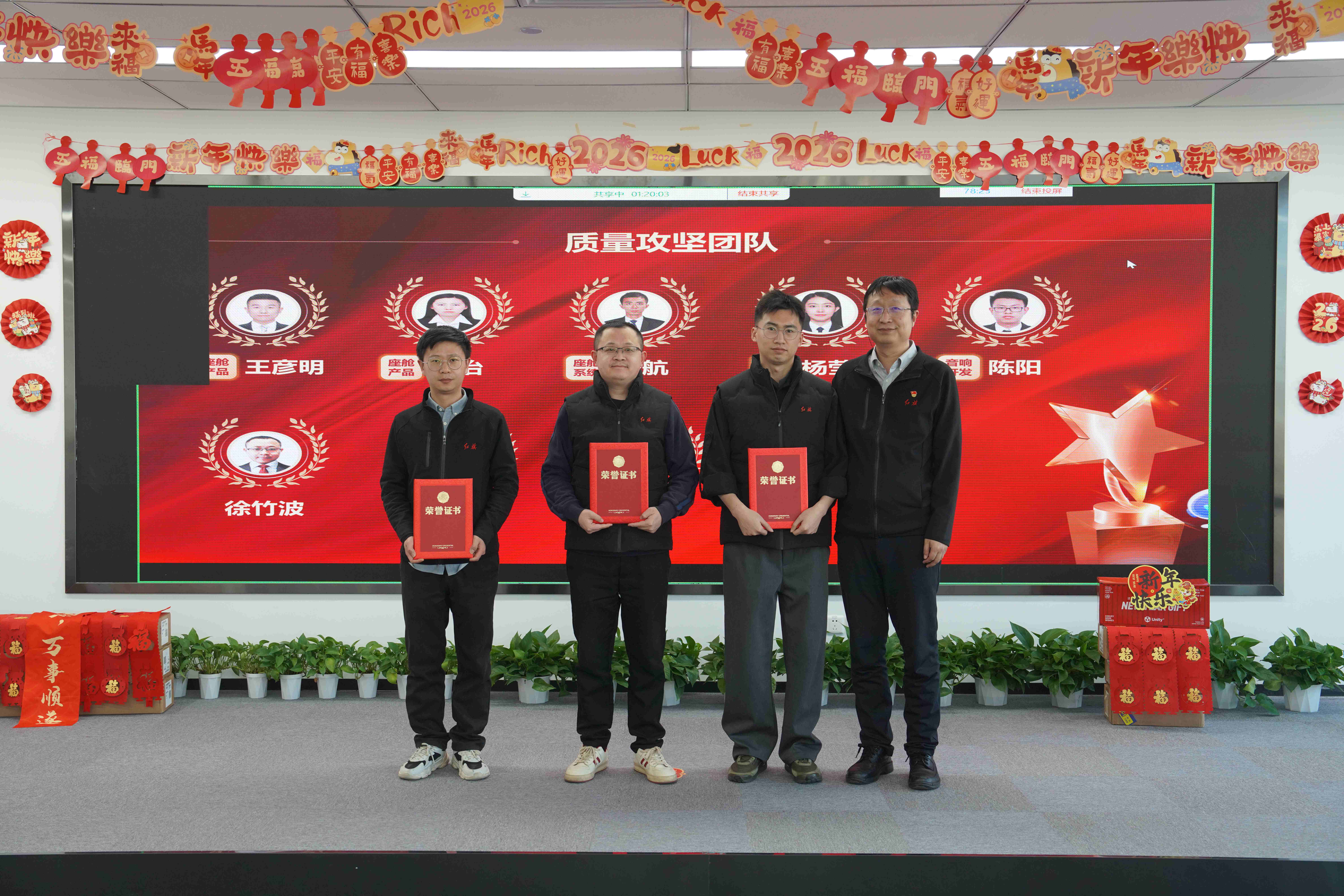 最后大会对年度表现突出的集体和个人进行表彰。本年共设立“专业杰出之星”“创优先锋之星”“新锐成长之星”三大个人奖项,以及“量产项目攻关团队”“数智化攻关团队”“质量攻坚团队”“极致降本团队”“关键技术攻关团队”“效能提升团队”六大集体奖项。大会还联合工会组织了随机抽奖活动,惊喜连连,共110名员工获奖纪念礼品。